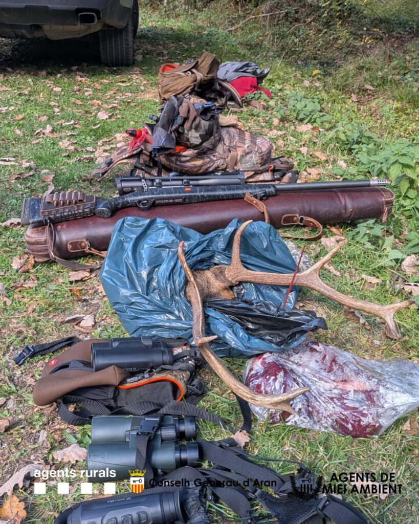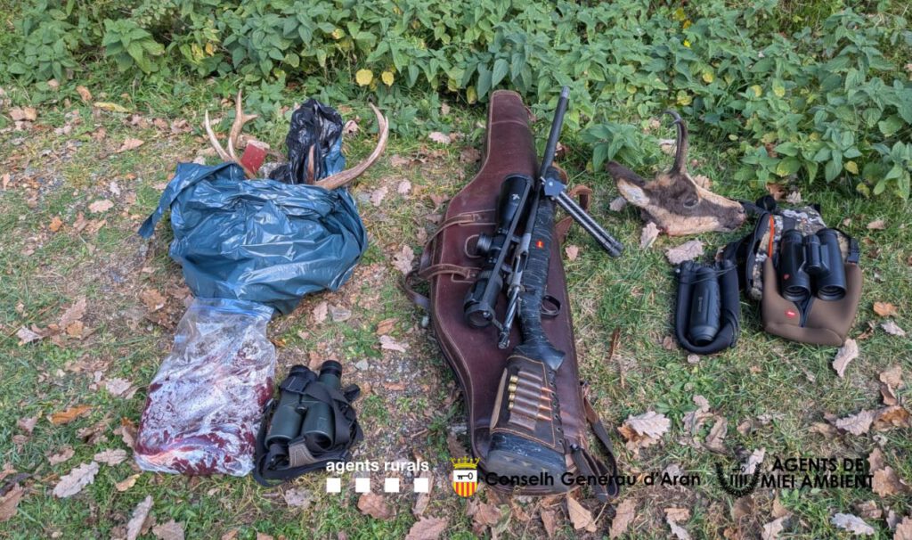Enes dus operatius s’an confiscat es pèces, es armes e diuèrsi elements utilizadi entara caça furtiva, coma binòcles, visors termics e d’auti instruments.