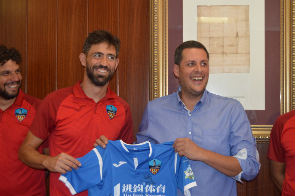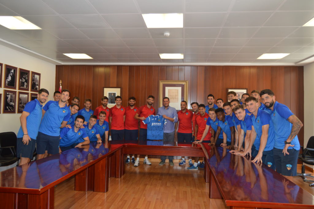 El Lleida Esportiu ha obsequiat al conseller Manero amb una samarreta signada per tots els jugadors, i el Conselh els ha ofert també un petit regal.