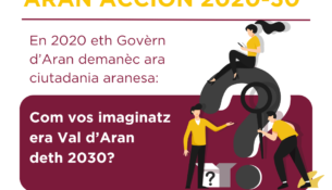 En 2020, mès de 200 persones participèren “activaments” en Aran Accion 2030 tà dar era sua opinion sus quina ère era Val d’Aran que volien entà 2030.   De totes es prepauses hètes pera ciutadani...