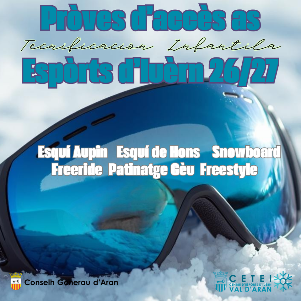 • Eth Conselh Generau d’Aran, a trauès deth sòn Departament d’Espòrts e deth projècte CETEI (Centre Especializat en Tecnificacion d’Espòrts d’Iuèrn), anóncie era dubertura des pròves d’accès tath Programa de Tecnificacion Infantila d’Espòrts d’Iuèrn entara sason 2026/2027
