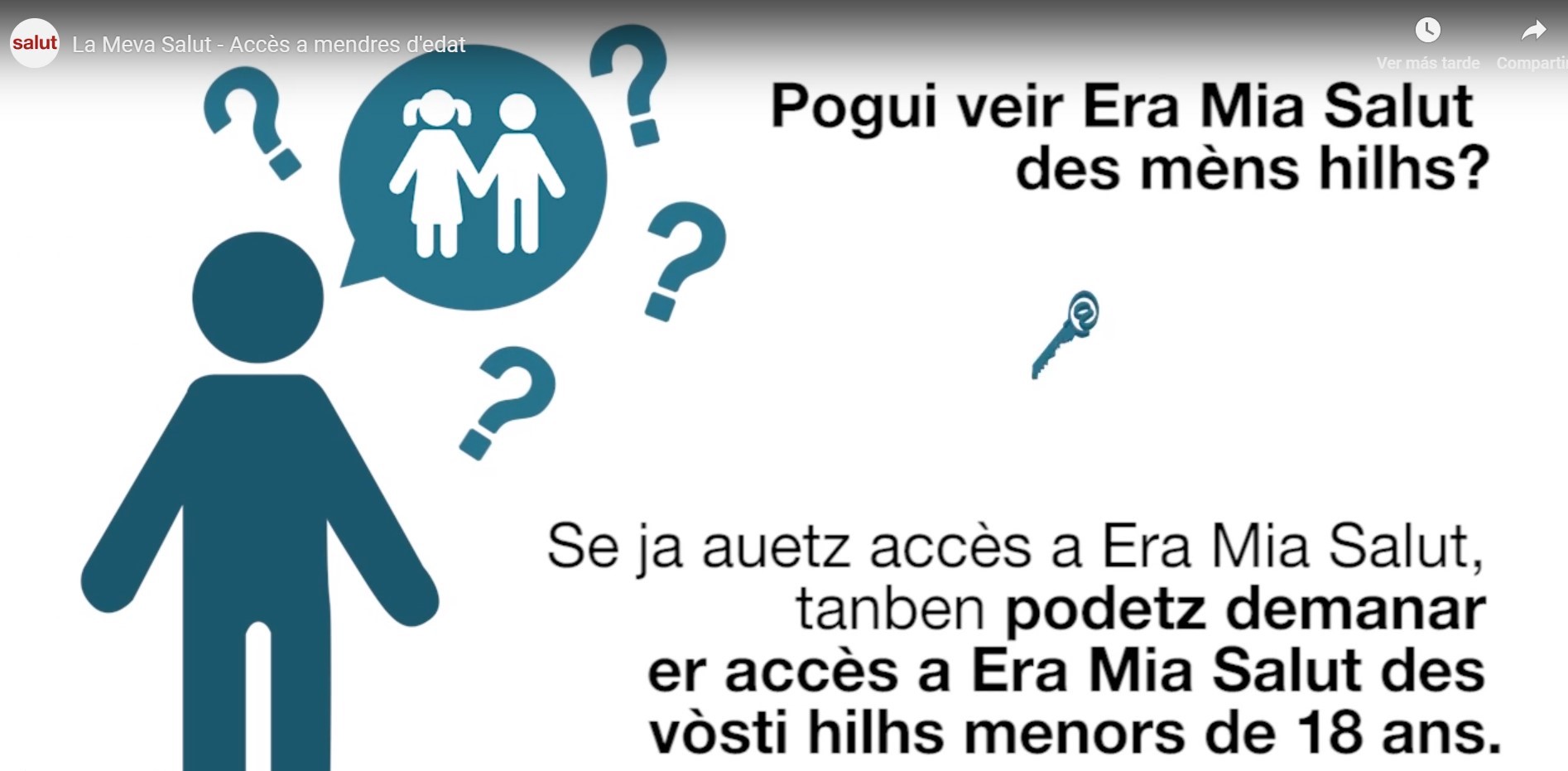 Vielha, 21 de noviembre de 2018.- La Meva Salut (LMS) es la web del Departamento de Salud de la Generalitat de Catalunya que permite a la ciudadanía acceder a su información de salud. Ahora también se abre a los padres para que puedan acceder a la información de sus hijos o de las personas de las que son responsables legales hasta que son mayores de edad. También cambia la edad mínima para acceder, que ahora es a partir de los 16 años.