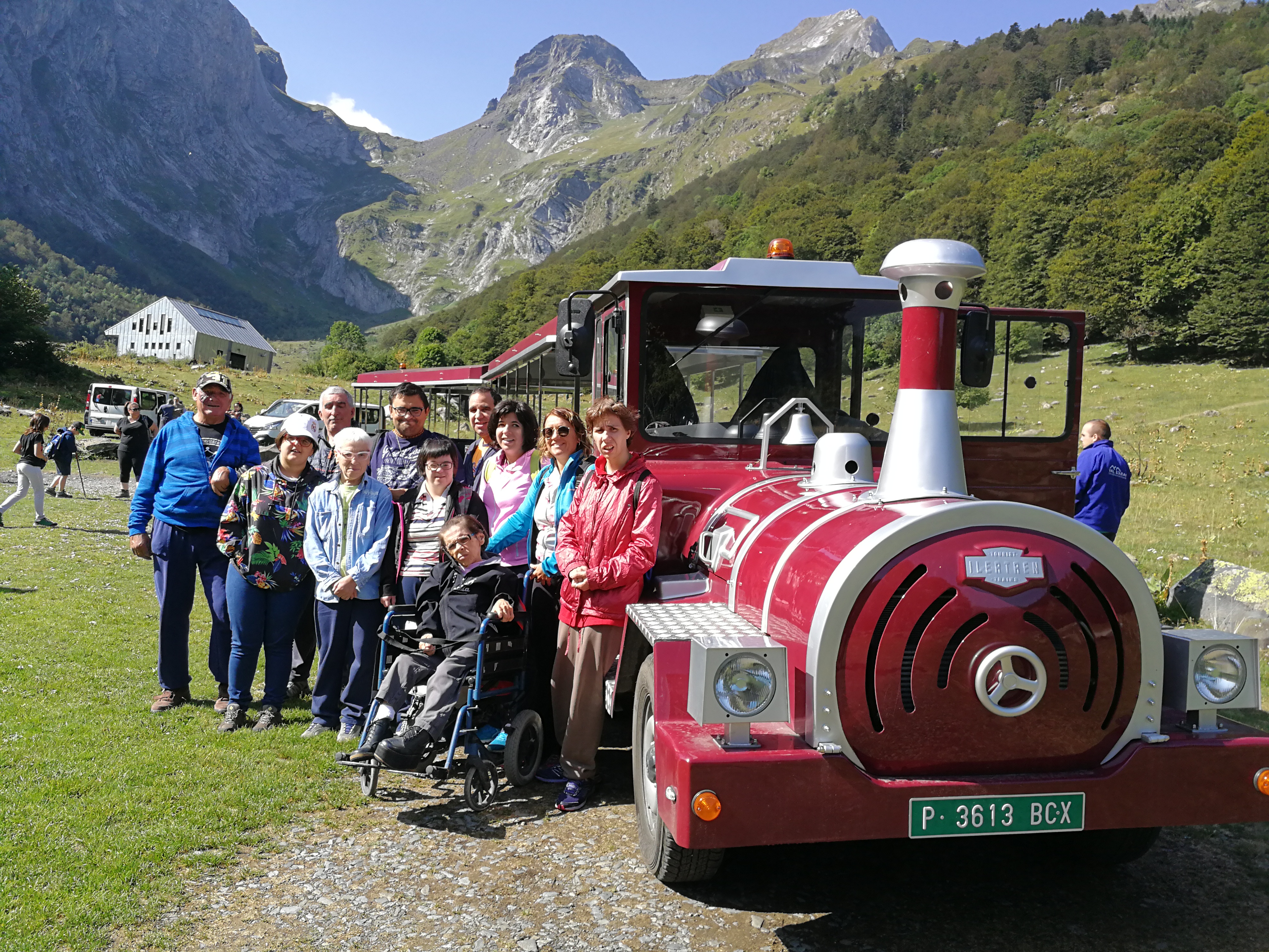 Los alumnos del Centro Ocupacional ADDA también visitaron en la Artiga de Lin los Uelhs deth Joeu y llegaron hasta el Pla de la Artiga con el tren turístico que como cada verano ha puesto en funcionamiento el Conselh Generau d’Aran.