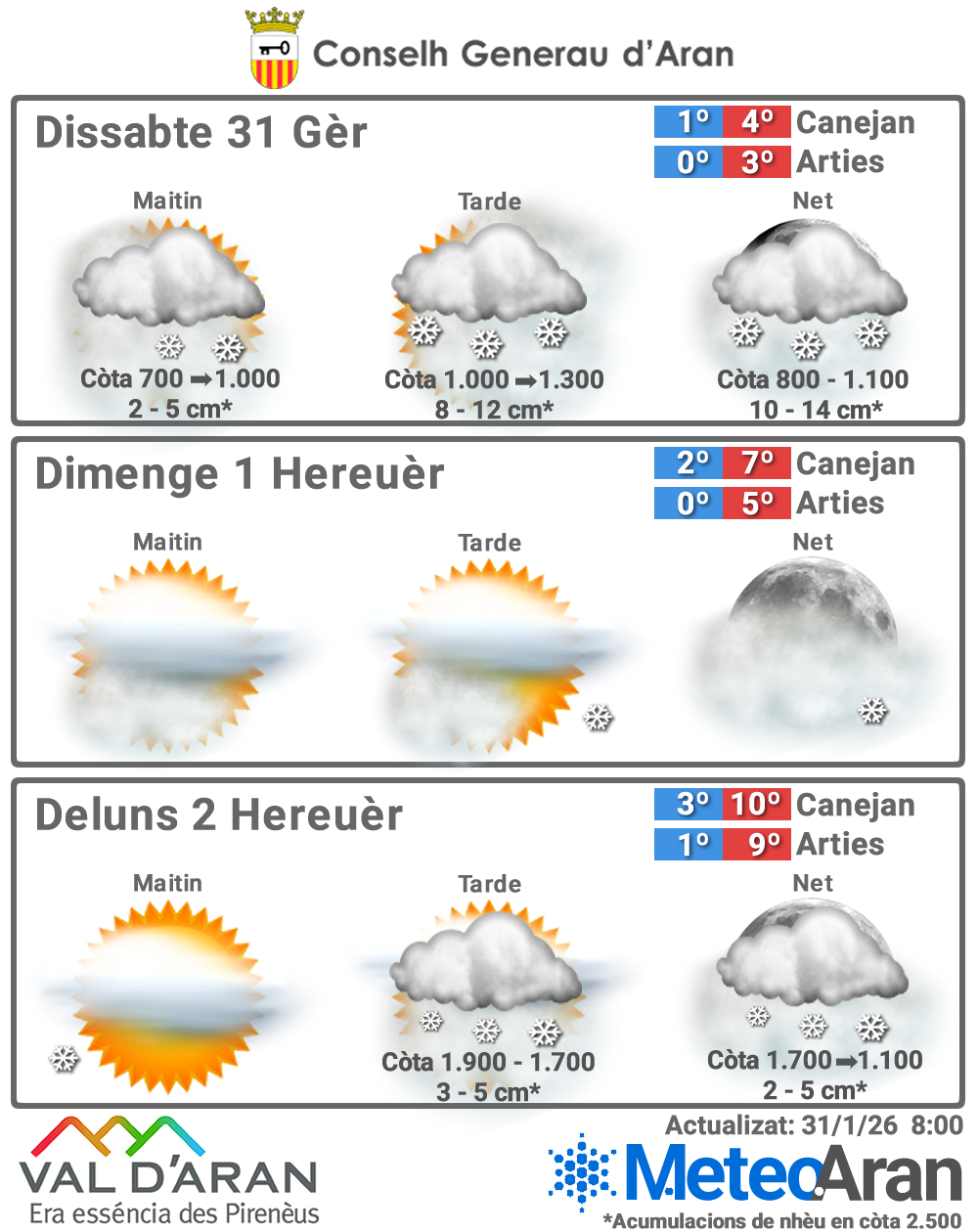 🌡️ 2 °C / 7 °C en Canejan 🌡️ 0 °C / 5 °C en Arties