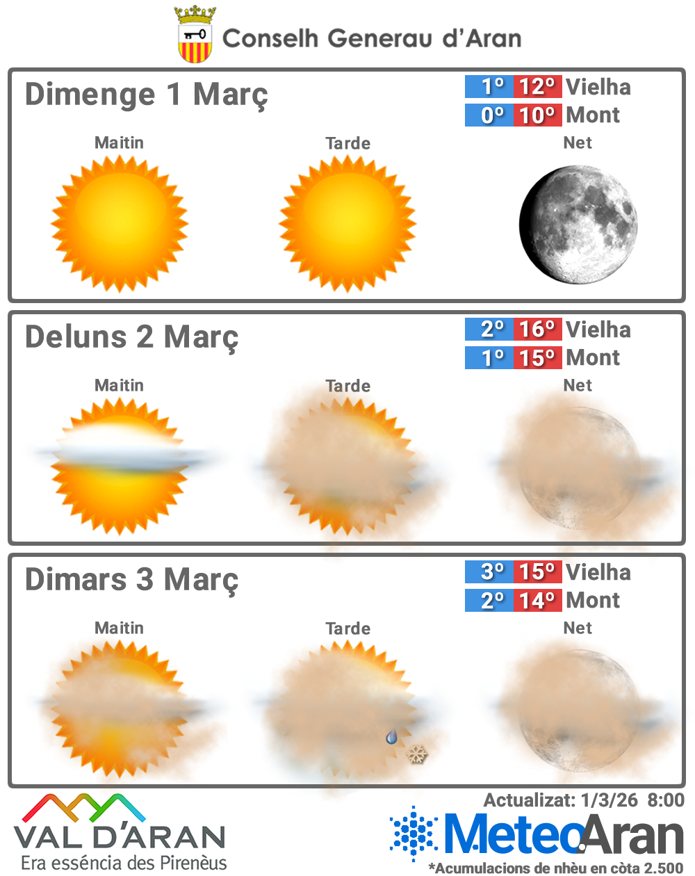 Vielha: 🌡️ 1 °C / 12 °C