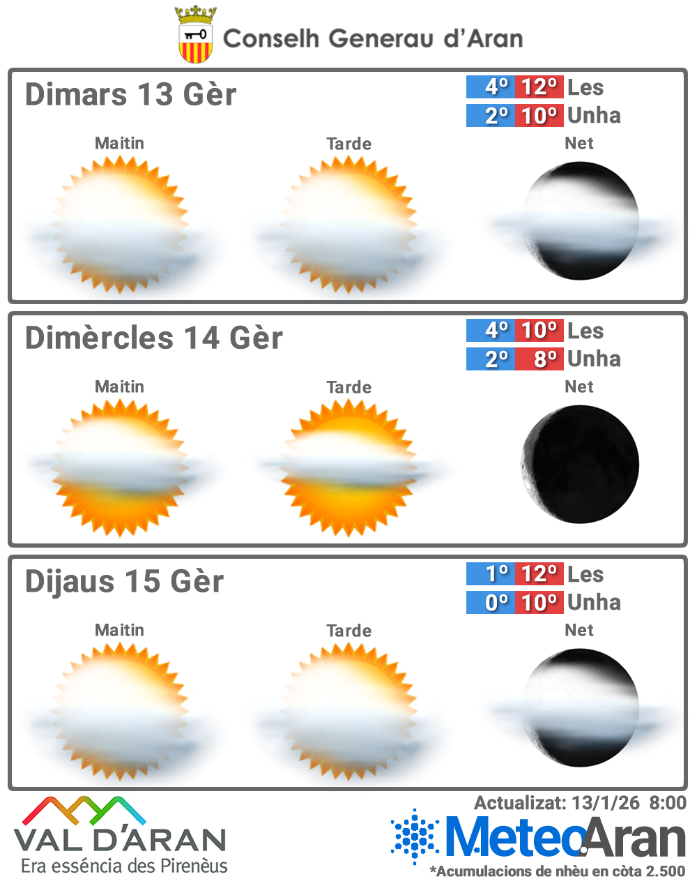 Día otra vez estable con sol filtrado por nubes altas, dejando un cielo parcialmente velado, algo menos que la jornada anterior. Vientos débiles del sur.
