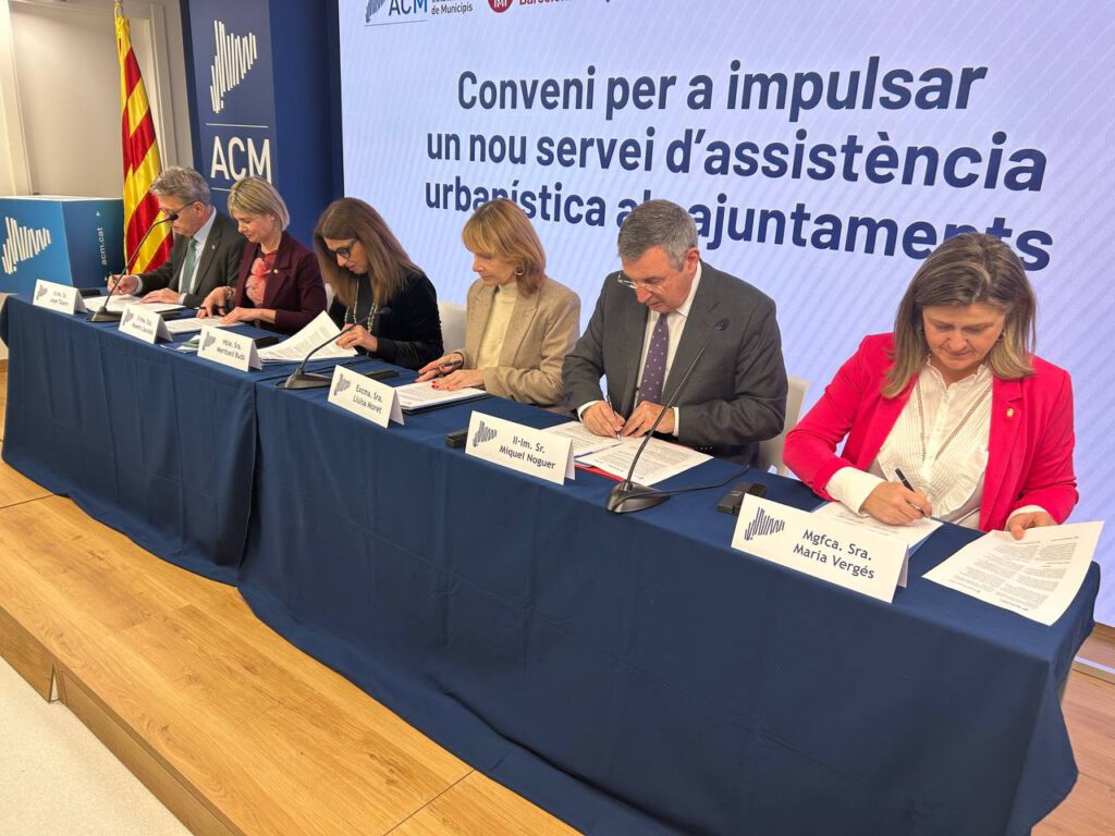 Era Associacion Catalana de Municipis (ACM), a trauès dera Fondacion d’Impuls deth Territòri (FMIT), eth Conselh Generau d’Aran e es Deputacions de Barcelona, Girona, Lhèida e Tarragona an signat aué un convèni de collaboracion entà méter en foncionament un nau servici d’assisténcia urbanistica adreçat a toti es ajuntaments, damb ua atencion especiau as municipis damb mens recorsi pròpris.