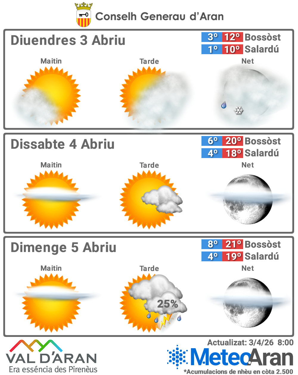 La mañana comenzará con sol y nubes altas muy delgadas; por la tarde crecerán cúmulos y se podrían producir las primeras tormentas del año con un 25% de probabilidad.