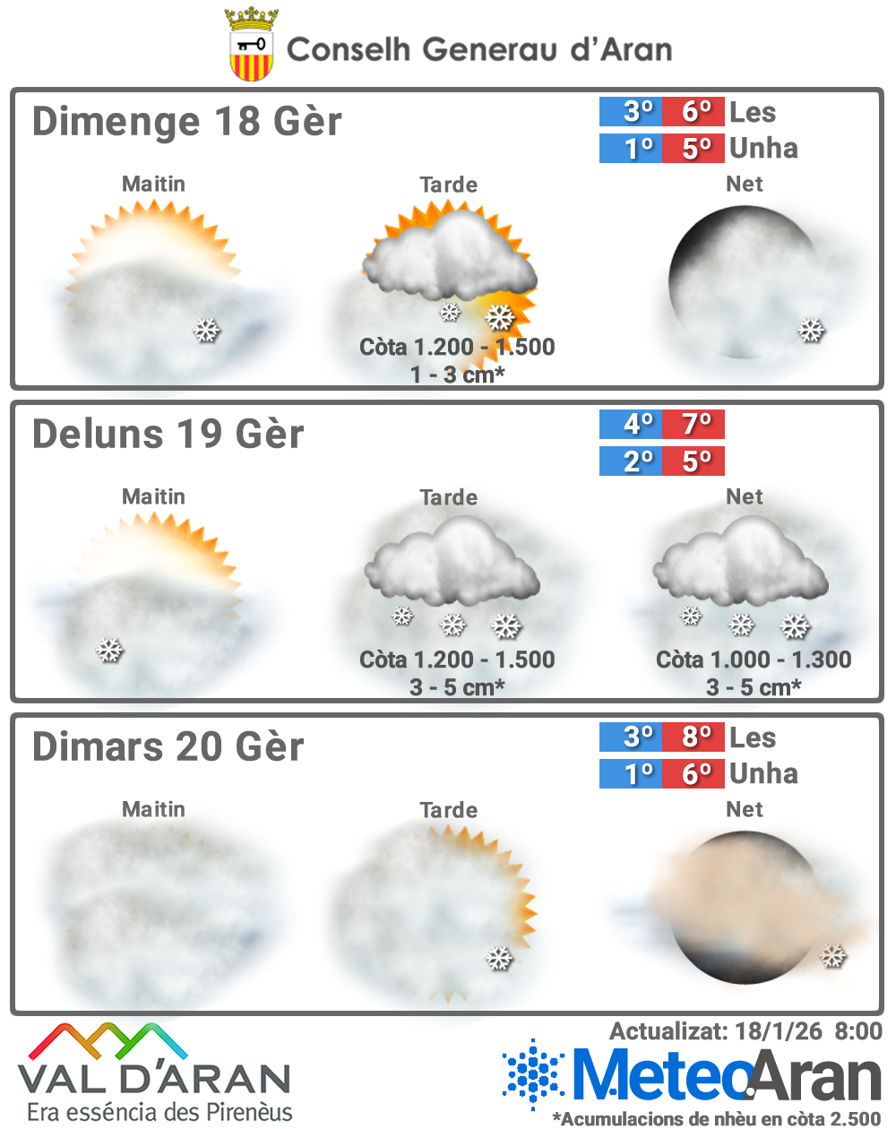🌡️ 3 °C / 6 °C en Les 🌡️ 1 °C / 5 °C en Unha